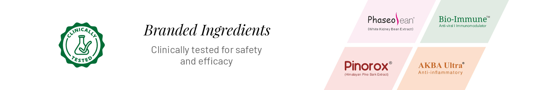 Contains α-amylase Inhibitor: 20000 AIU known for its ‘Starch Blocking’ action. A powerful ingredient for weight loss regime.